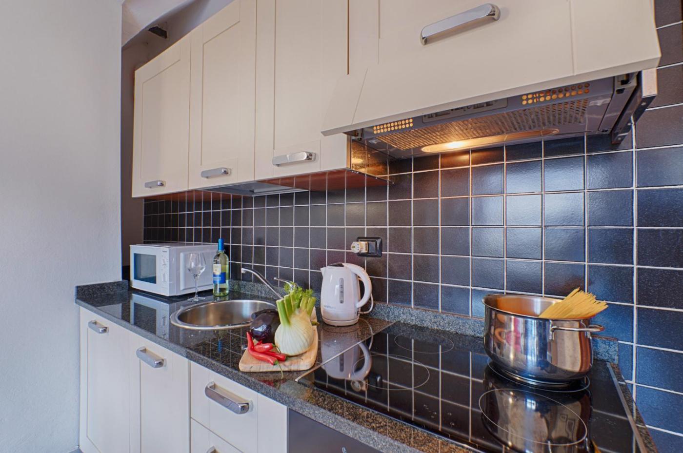 One-Bedroom Apartment. Featuring a private entrance, this air-conditioned apartment consists of 1 living room, 1 separate bedroom and 1 bathroom with a bath and a shower. Guests can make meals in the kitchen that is equipped with a stovetop, a refrigerator, an oven and a microwave. Boasting a terrace with lake views, this apartment also provides soundproof walls and a flat-screen TV with streaming services. The unit offers 2 beds. ;