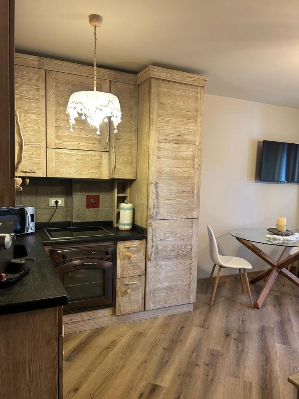 Deluxe Studio. Featuring free toiletries, this studio includes a private bathroom with a bath or a shower, a bidet and a hairdryer. The well-fitted kitchen features a stovetop, a refrigerator, kitchenware and an oven. The studio has parquet floors, a seating area with a flat-screen TV, a washing machine, a coffee machine as well as mountain views. The unit has 1 bed. ;